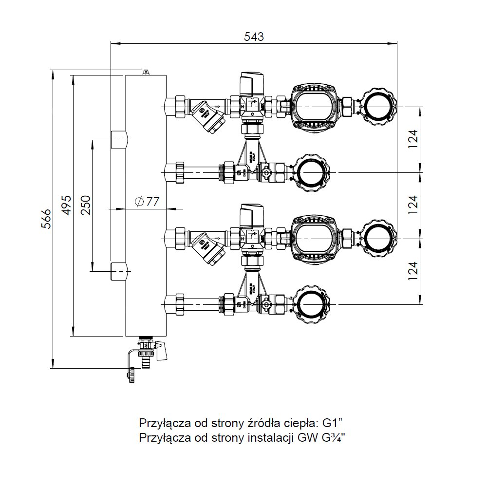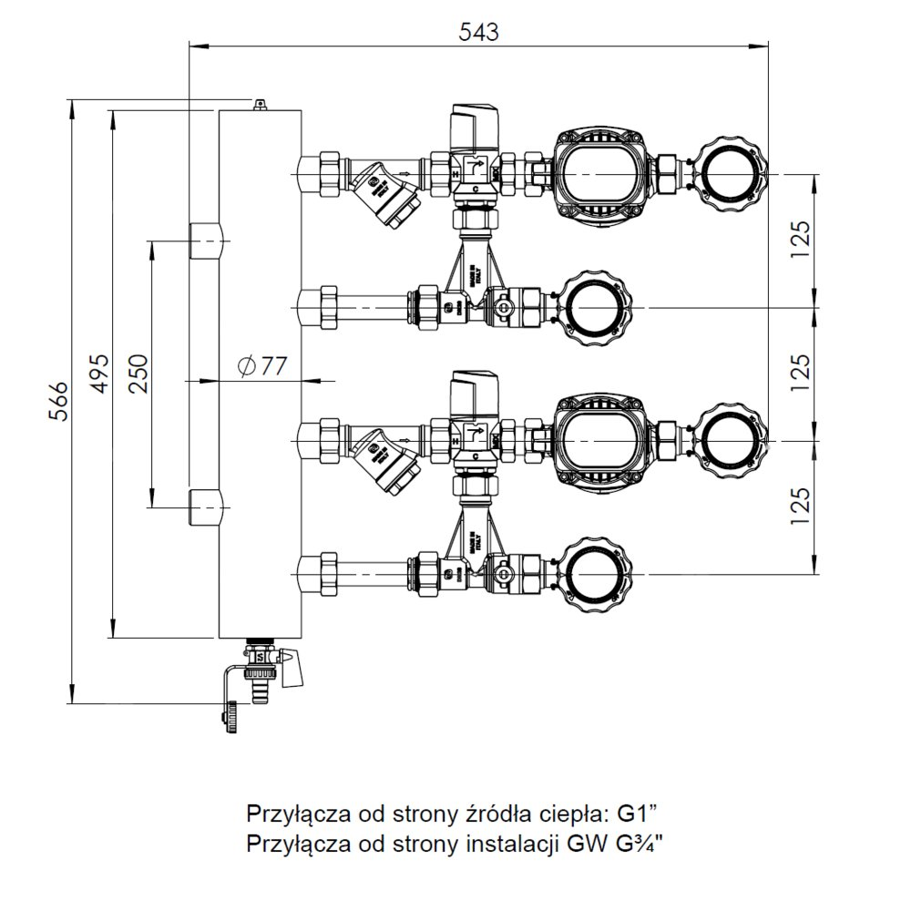 Pozwala na przyłączenie dwóch obiegów grzewczych/chłodzących.