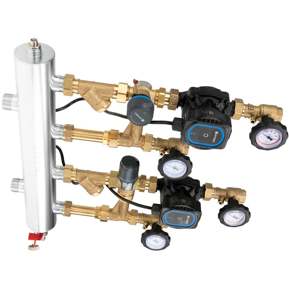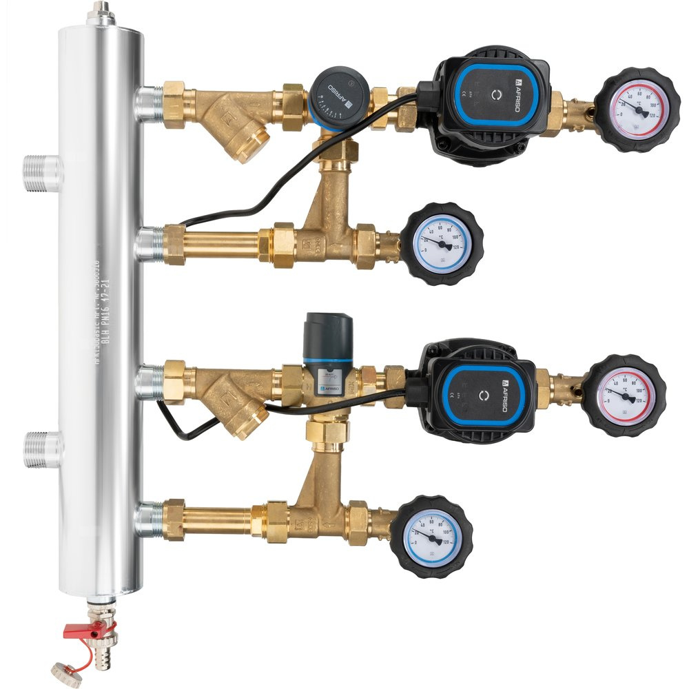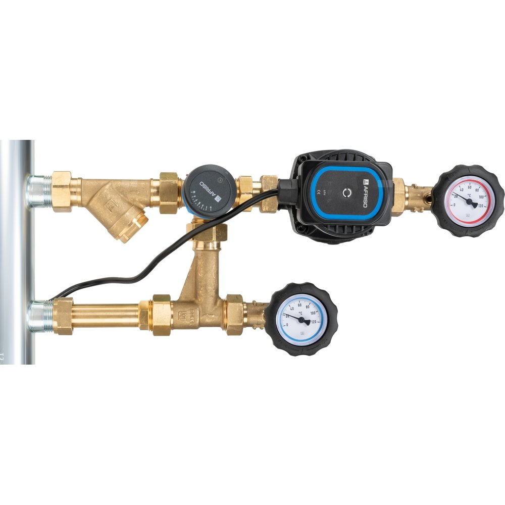 Grupa pompowa AFRISO BPS 961 AP GZ x GW 1'' x 3/4'', z zaworem mieszającym, z zaworem termostatycznym, z pompą obiegową AFRISO APH 160 15-7/130 mm