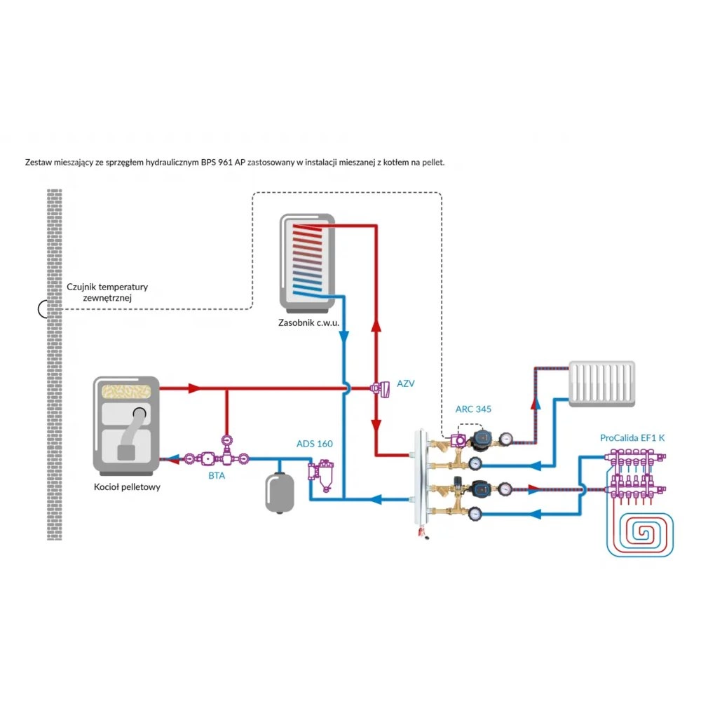 Stosowany w instalacjach grzewczych i chłodzących.Montowany na ścianie między źródłem a instalacją.