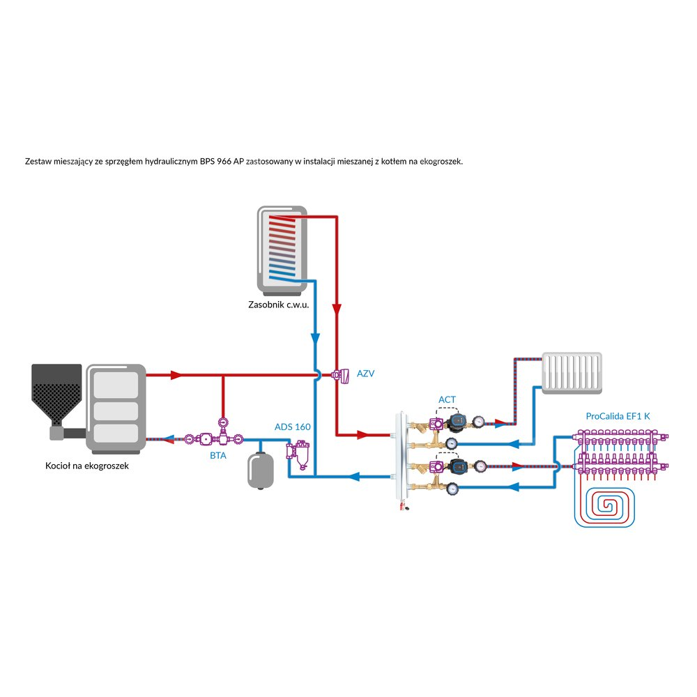 Stosowany w instalacjach grzewczych i chłodzących.Montowany na ścianie między źródłem a instalacją.