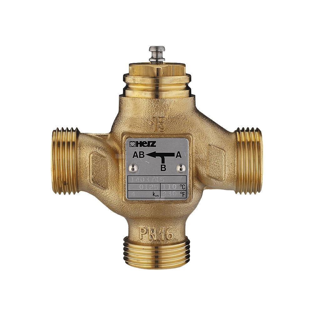 Zawór 3-drogowy mieszający i rozdzielający do regulacji ciągłej w instalacji wody zimnej i cieplej. Z napędem 1 7712 działa jako regulator nastawczy z możliwością wyboru charakterystyki. Trzpień ze stali nierdzewnej, grzybek zaworu z mosiądzu ze wzmocnionym uszczelnieniem teflonowym. Dlawnica z mosiądzu z O-ringiem z EPDM. Montaż w dowolnej pozycji, poziomej lub pionowej. Korpus w wykonaniu żółtym z odlewu mosiężnego z 3 gwintami zewnętrznymi, uszczelnienie płaskie, bez półśrubunków przyłączeniowych.