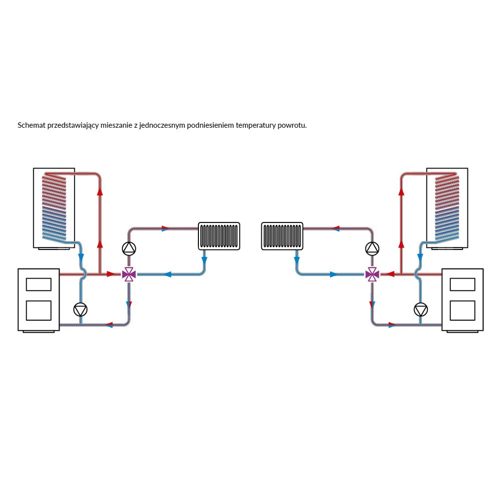 Miesza w odpowiednich proporcjach strumienie czynnika wypływającego na instalację i powracającego do kotła.