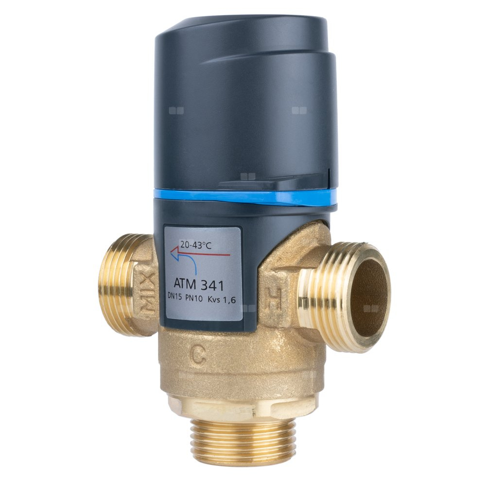 Zawór regulacyjny termostatyczny do wody ciepłej AFRISO ATM 341 mosiądz GZ 3/4'', DN 15, zakres temp. 20-43'C, Kvs 1.6 m3/h, maksymalna temperatura 90'C, maksymane ciśnienie 10 bar