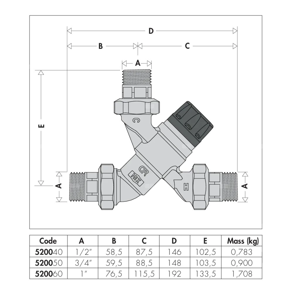 Termostatyczny zawór mieszający "L" 35 st. -65 st. C DN20 ze złączkami