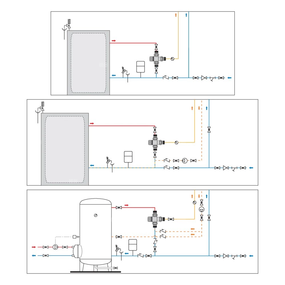 Regulowany termostatyczny zawór mieszający z zaworami zwrotnymi do regulacji temperatury w miejscu dystrybucji Z funkcją antyoparzeniową. Przyłącze: G 1/2" A (ISO 228-1) GZ, złączka. Maksymalne ciśnienie pracy: 10 bar. Zakres temperatury medium: 2–90 °C. Zakres regulacji temperatury: 35–65 °C. Wykończenie: chromowane. Kv: 1,5 m³/h. Materiał: stop mosiądzu odporny na odcynkowanie z niską zawartością ołowiu.