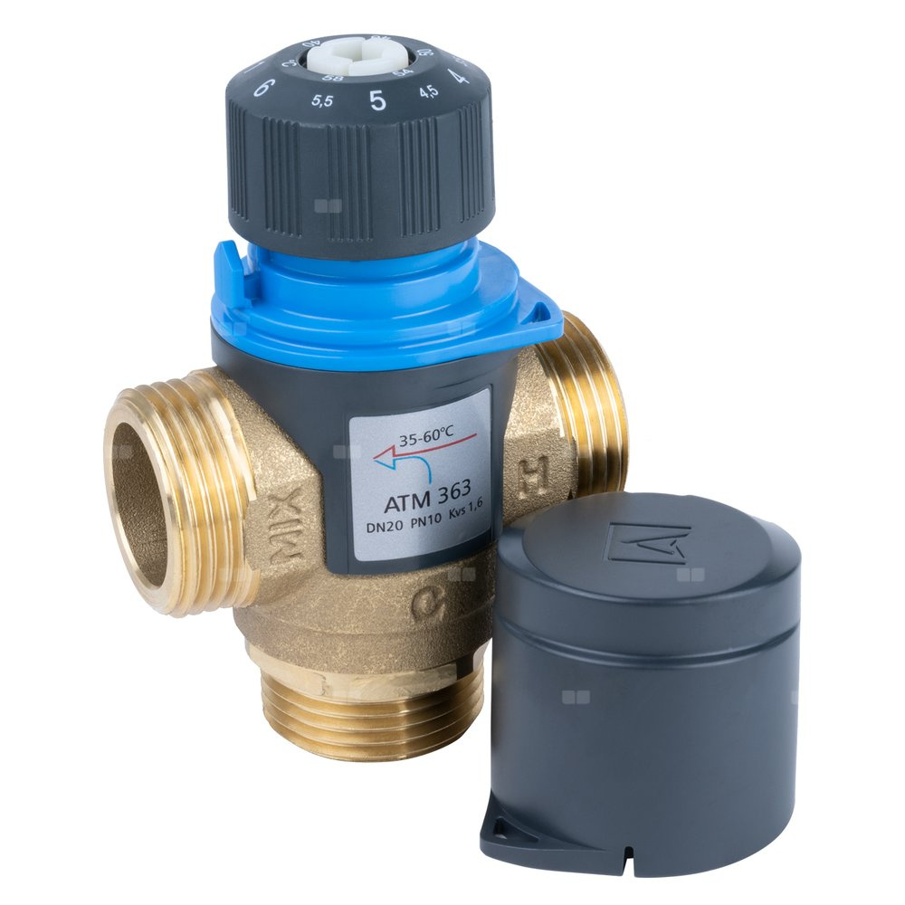 Zawór regulacyjny termostatyczny do wody ciepłej AFRISO ATM 363 mosiądz GZ 1'', DN 20, zakres temp. 35-60'C, Kvs 1.6 m3/h, maksymalna temperatura 90'C, maksymane ciśnienie 10 bar