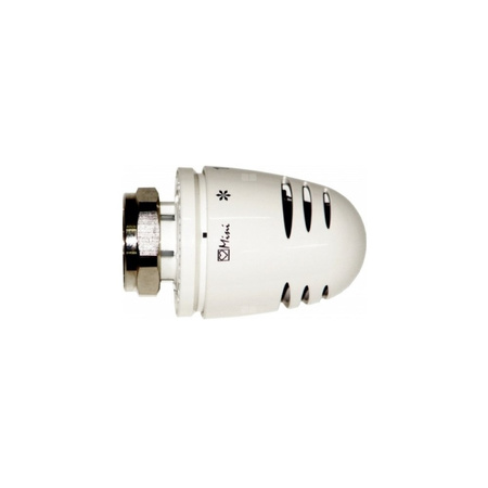 Głowica termostatyczna z czujnikiem cieczowym, automatyczne zabezpieczenie przed zamarznięciem instalacji c.o. przy ok. 6°C. Ograniczenie i blokada zakresu nastaw temperatury (6-28°C) za pomocą sztyftów blokujących (odrębnie do nabycia). Wymiary: długość 75 mm, średnica 45 mm.