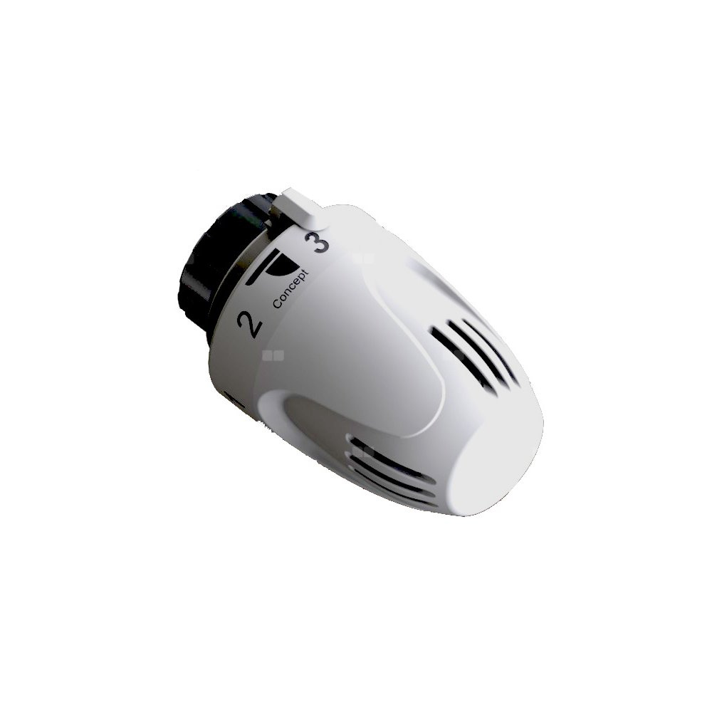 Głowice CONCEPT BY COMAP są regulatorami proporcjonalnymi bez dodatkowego zasilania z czujnikiem cieczowym wbudowanym i blokadą nastaw. Zakres regulacji temperatury w pomieszczeniu mieści się w granicach 9 do 29°C w zakresie nastaw od 1 do 5 z zabezpieczeniem przeciw zamarzaniu. Nastawa „3“ odpowiada temperaturze otoczenia 20°C. Żądana temperatura oraz temperatura maks. lub min. ustawiana jest za pomocą trzpienia blokującego.