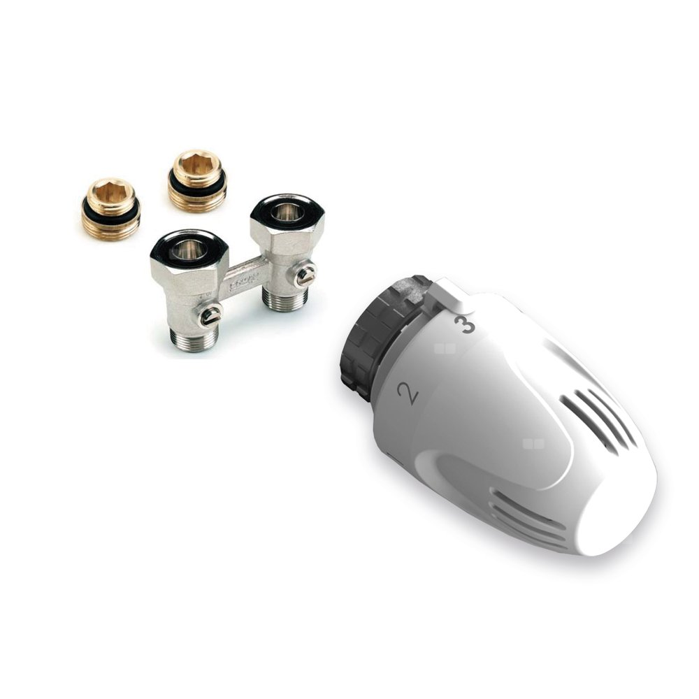 Pakiet termostatyczny CONCEPT by Comap do grzejników typu V, składający się z głowicy termostatycznej oraz modułu grzejnikowego. Użycie pakietu pozwala na całkowicie automatyczną regulację temperatury panującej w pomieszczeniu. Czujnik cieczowy dostosowuje stopień otwarcia zaworu kontrolującego wodę grzewczą do pożądanego ustawienia na głowicy. Pozwala to na znaczne obniżenie kosztów energii, podnosząc jednocześnie komfort przebywania w pomieszczeniu.