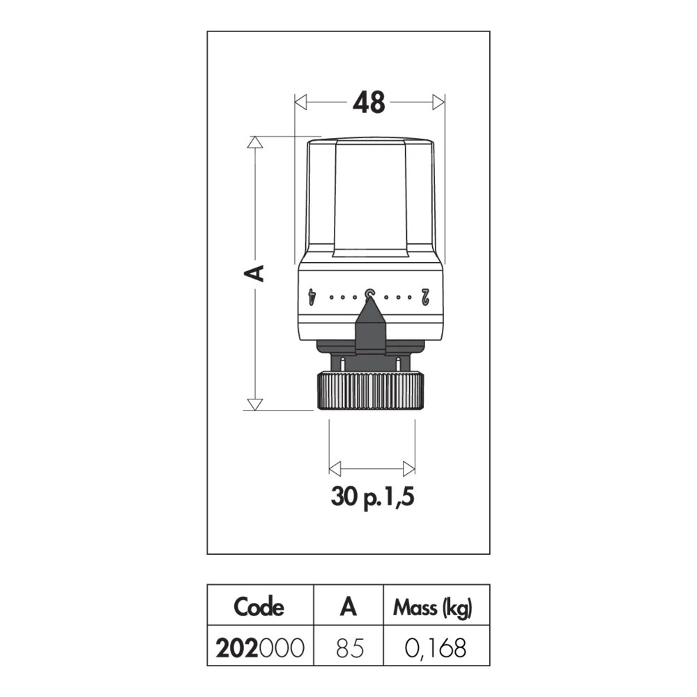 Podziałka stopniowa od ❄ do 5 odpowiadająca zakresowi regulacji temperatury od 7°C do 28°C.