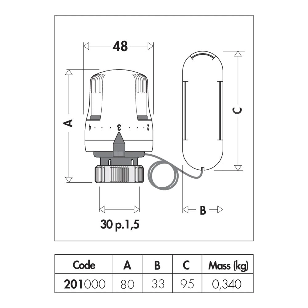 Podziałka stopniowa od ❄ do 5 odpowiadająca zakresowi regulacji temperatury od 7°C do 28°C.