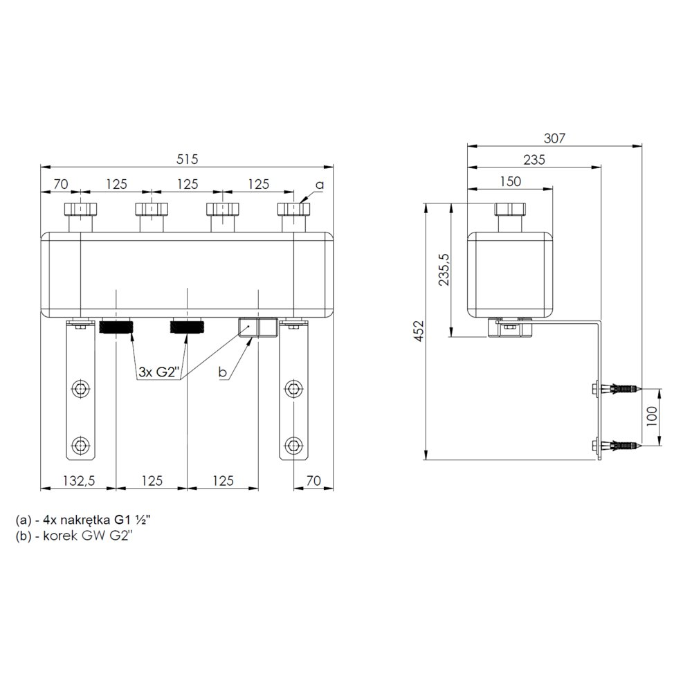 Przyłącza od strony instalacji dostosowane do grup pompowych PrimoTherm: Vario, K DN25 oraz K DN32.