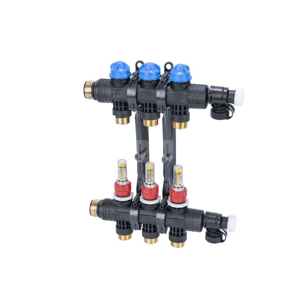 Rozdzielacz do ogrzewania podłogowego AFRISO ProCalida EF1 K 3-obieg. poliamid GZ 1" x Eurocono 3/4" + przepływomierz + zawór napełn/spust
