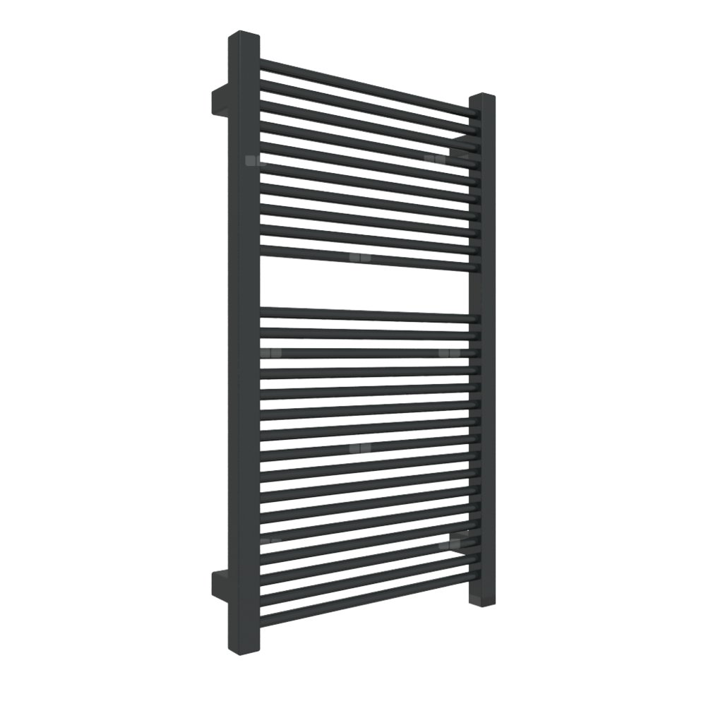 Grzejnik elektryczny TERMA MIKE ONE 430 x 735 mm, kolor czarny jak kruk RAL9005, moc 400 W, podłączenie E8, kabel spiralny z wtyczką 2,5m srebrzysty