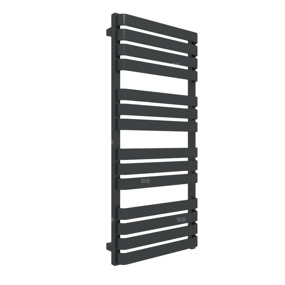 Grzejnik elektryczny TERMA WARP 500 x 1110 mm, kolor czarny jak kruk RAL9005, moc 600 W, podłączenie E1, kabel spiralny z wtyczką