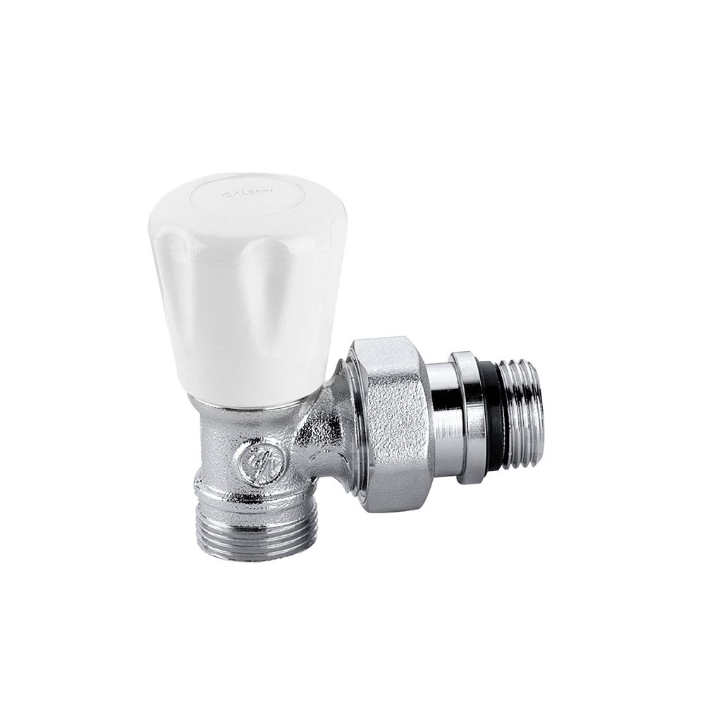 Kątowy ręczny zawór grzejnikowy. Wersja kątowa. podłącznie rury: G 3/4" A (ISO 228-1) GZ, wlot, podłączenie kątowe, Podłączenie do złączek Caleffi. podłączenie grzejnika: G 1/2" A (ISO 228-1) GZ, wylot, podłączenie kątowe. Maksymalne ciśnienie pracy: 10 bar. Zakres temperatury medium: 5–100 °C. Wykończenie: chromowane. Kv: 3,99 m³/h. Materiał: mosiądz.