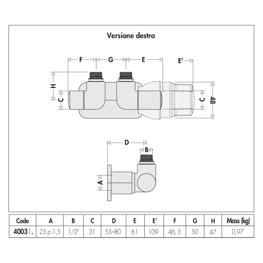 HIGH-STYLE para zaworów dekoracyjnych 3-osiowych. Przyłącze centralne. Wykonanie prawe. Wykończenie: chrom 1/2" 23 p. 1.5
