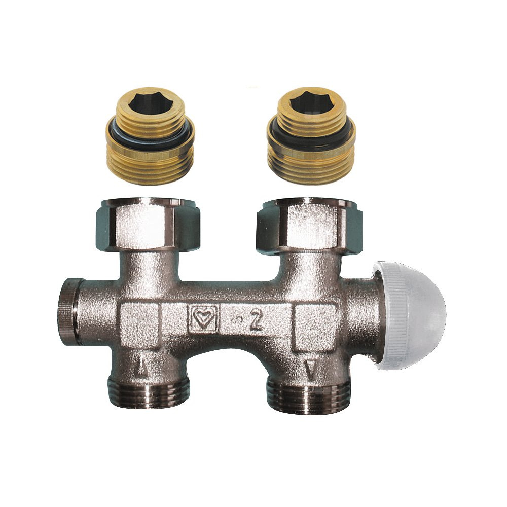 Zestaw przyłączeniowy grzejnikowy dwururowy HERZ TS-3000 (3798) 1/2'' x 3/4'', rozstaw 50 mm, zawór prosty przystosowany termostatycznie