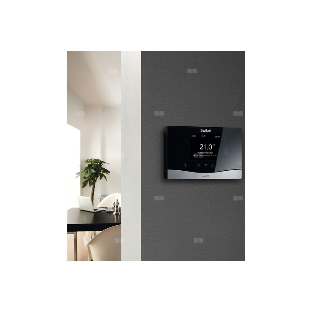 ze złączem komunikacyjnym eBUS,z zegarem programującym tygodniowym, wyświetlaczem dotykowym, sterujący obiegiem c.o., obiegiem c.w.u.,(komfortem c.w.u./zasobnikiem c.w.u./zasobnikiem warstwowym actoSTOR), oraz pompą cyrkulacyjną i/lub zewnętrzną pompą c.o. Aplikacja na urządzenia mobilne ( smartfon, tablet wyposażony w system iOS lub Android)