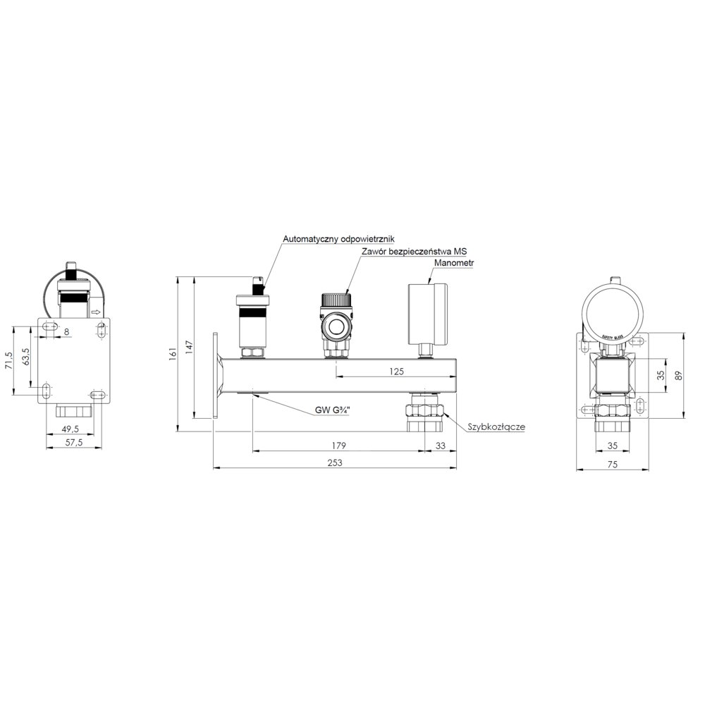 Służy do zamontowania naczynia przeponowego o pojemności do 25 l.