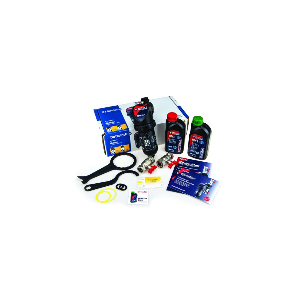Zestaw filtra magnetycznego Boilermag z preparatem czyszczącym instalację Cleaner BM3 500 ml oraz inhibitorem korozji BM1 500 ml, przeznaczony dla kotłów gazowych stojących i pomp ciepła. Wysokowydajny filtr zapewnia skuteczną i trwałą ochronę instalacji centralnego ogrzewania usuwając wszelkiego typu zanieczyszczenia (zarówno magnetyczne jak i niemagnetyczne). Technologia podwójnego przepływu maksymalizuje wydajność wyłapywania zanieczyszczeń, a regulacja 360˚ pozwala na szybki i łatwy montaż pod dowolnym kątem na instalacji. Pakiet zabezpieczający zawiera: filtr Boilermag z zaworami kulowymi, Inhibitor BM1 do zabezpieczenia instalacji (500 ml), Cleaner BM3 do czyszczenia instalacji (500 ml), paski pomiarowe do pomiaru stężenia inhibitora BM1, naklejka informująca o użyciu inhibitora.