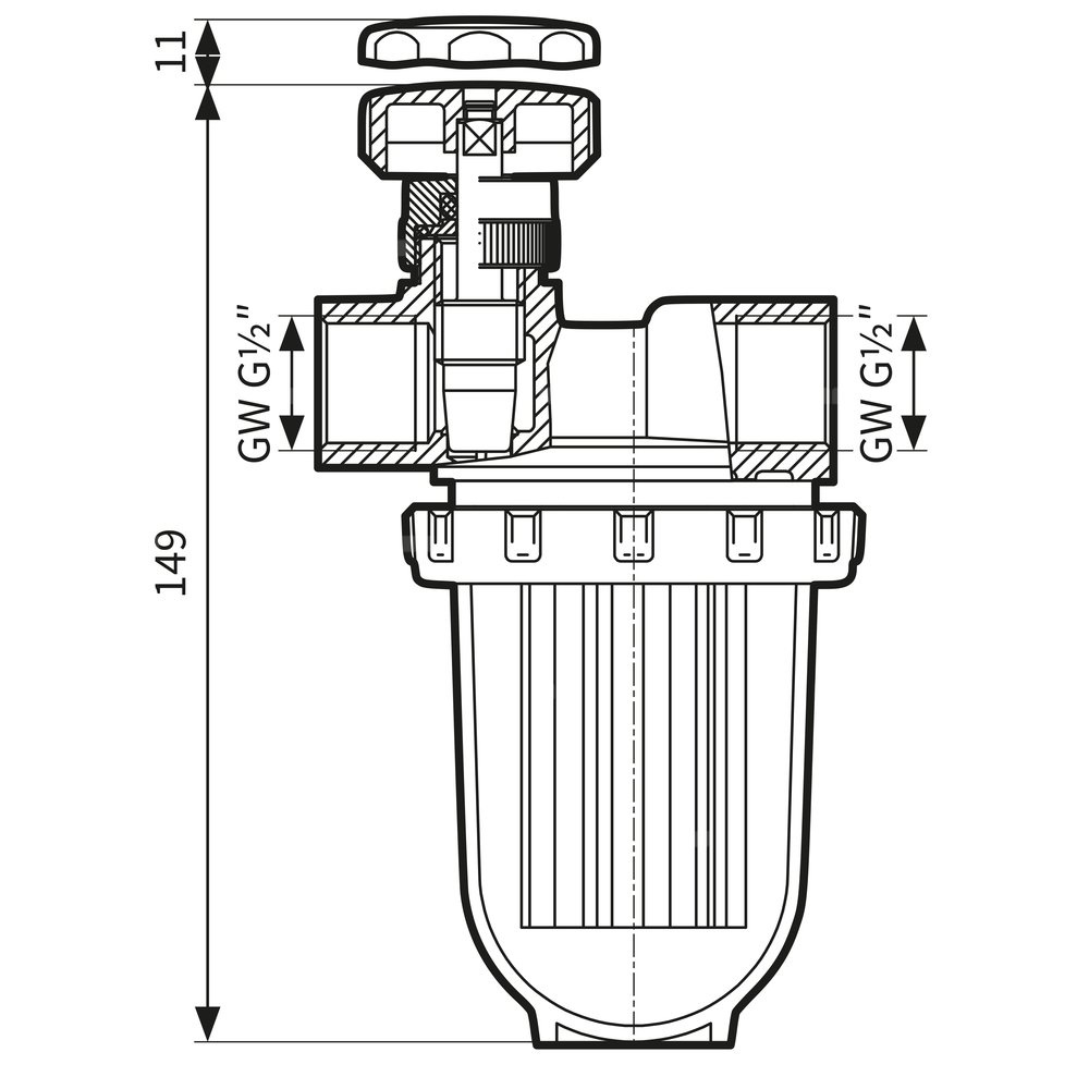 Filtr olejowy AFRISO V 1/2 - 500 Si jednorurowy fi 1/2'' x 1/2'' GW x GW, z wkładem plastikowym, maks. przepływ 390 l/h