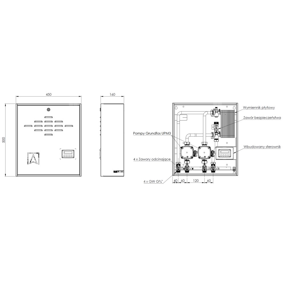 Stosowany do połączenia dwóch różnych źródeł ciepła poprzez oddzielanie ich obiegów za pomocą wymiennika płytowego.Montowany na lub w ścianie w pobliżu źródła ciepła.