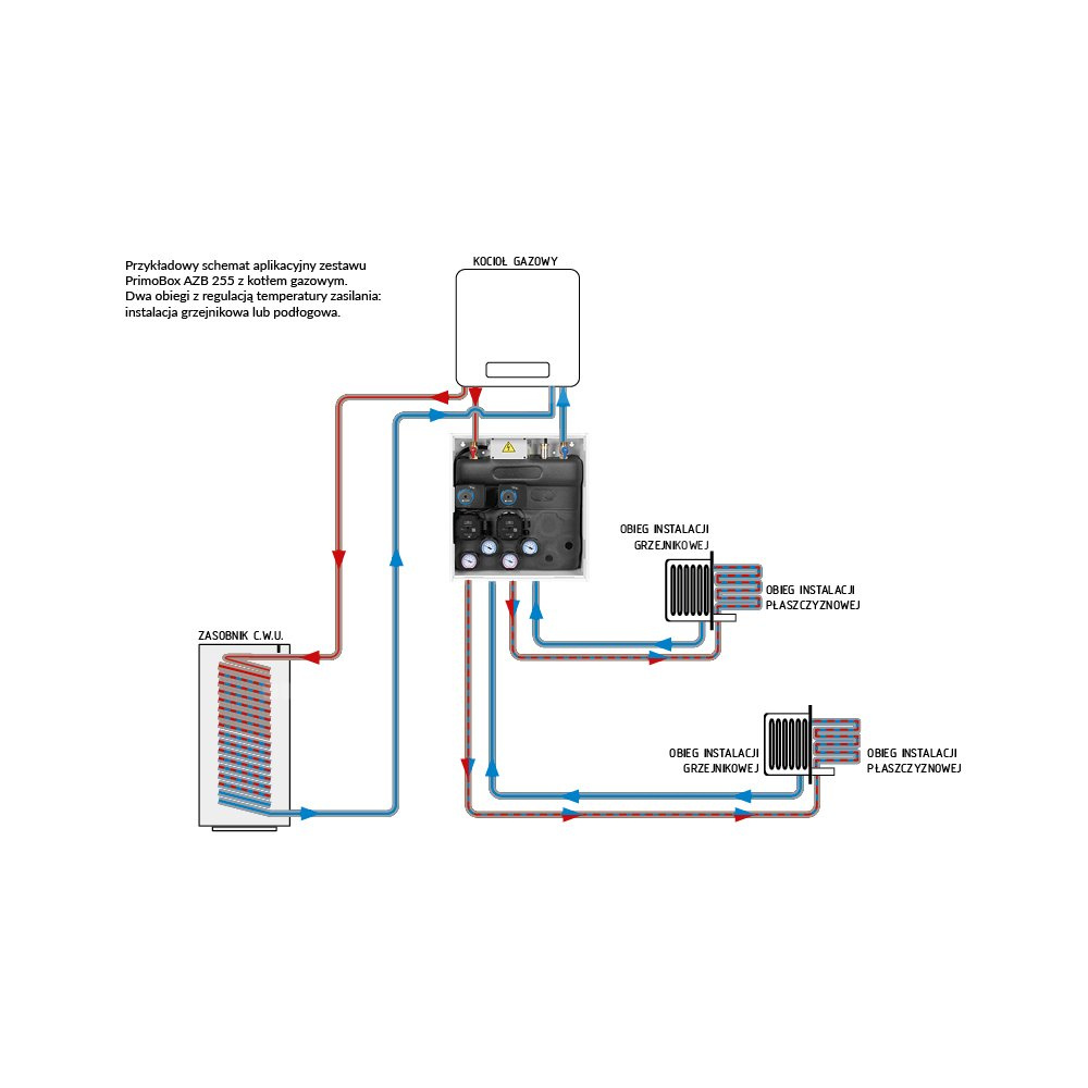 Opcjonalnie można połączyć go z zestawem separacyjnym **PrimoBox AHB** i stworzyć kolumnę grzewczą łączącą 2 źródła ciepła.