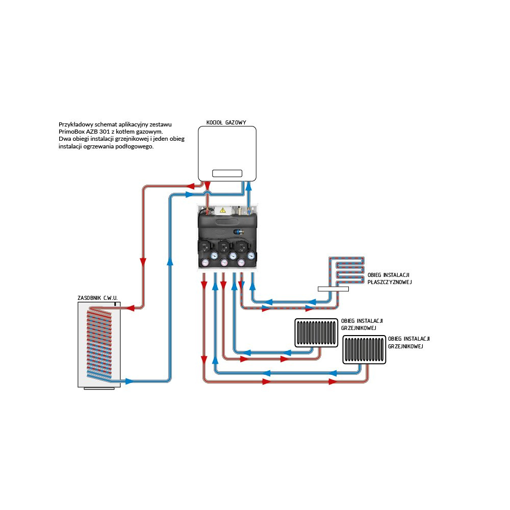 Opcjonalnie można połączyć go z zestawem separacyjnym **PrimoBox AHB** i stworzyć kolumnę grzewczą łączącą 2 źródła ciepła.
