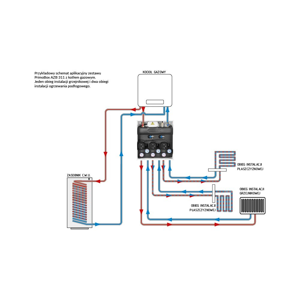 Opcjonalnie można połączyć go z zestawem separacyjnym **PrimoBox AHB** i stworzyć kolumnę grzewczą łączącą 2 źródła ciepła.