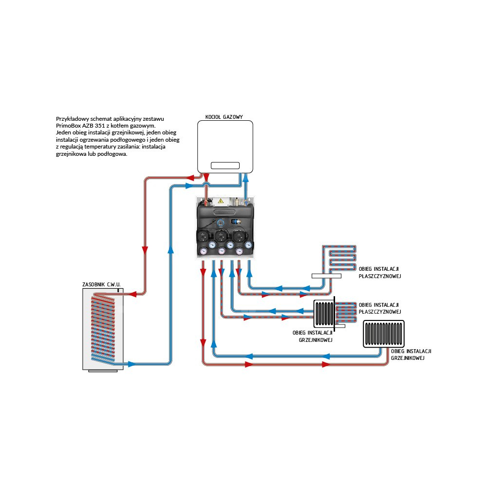 Opcjonalnie można połączyć go z zestawem separacyjnym **PrimoBox AHB** i stworzyć kolumnę grzewczą łączącą 2 źródła ciepła.