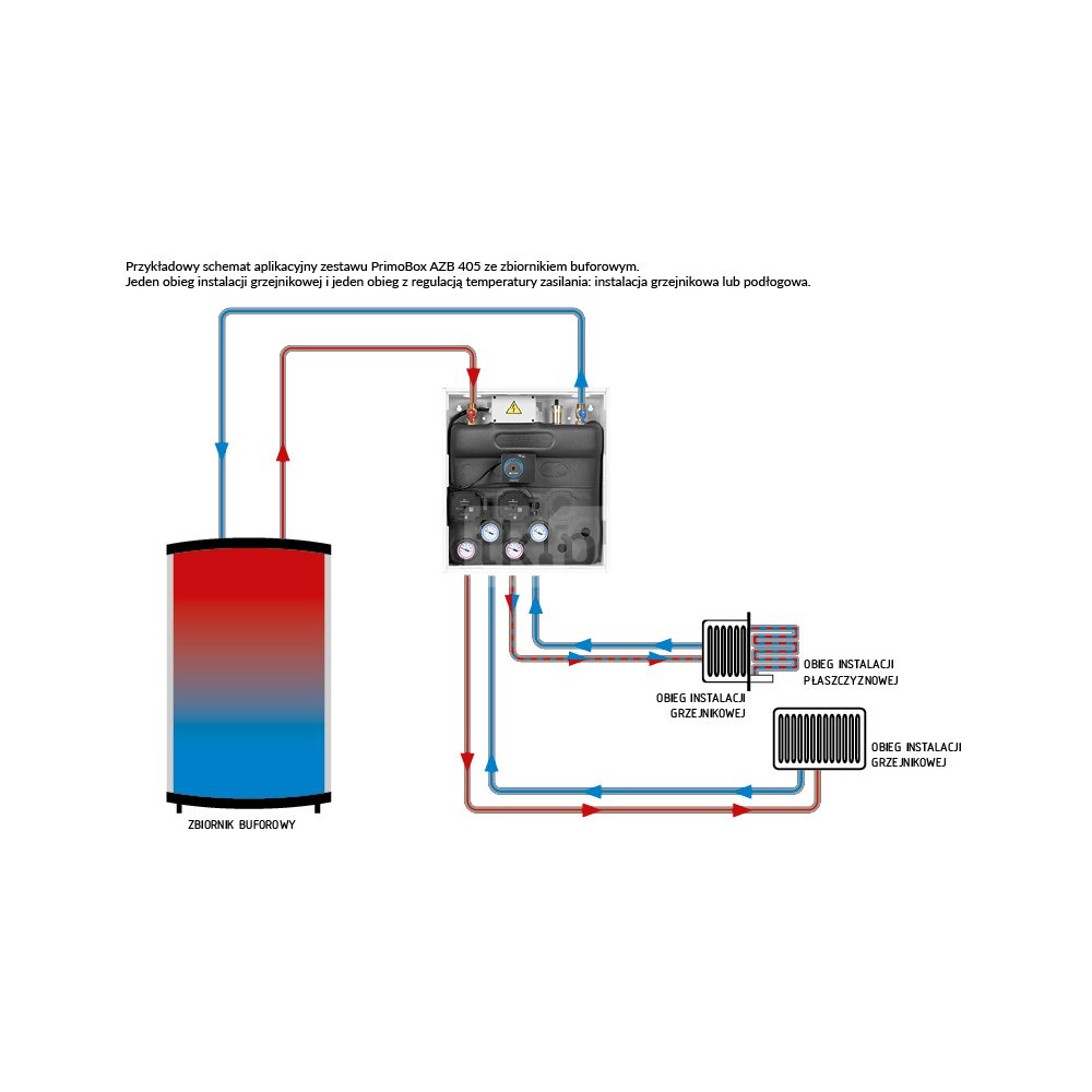 Zastępuje skomplikowane instalacje z rozdzielaczami, zaworami mieszającymi – 80% kotłowni w jednej szafce.
