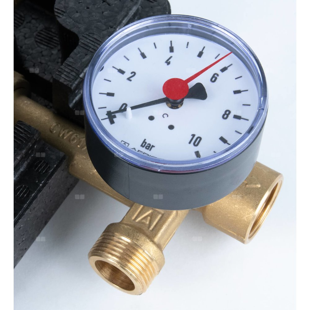 Grupa bezpieczeństwa z zaworem bezpieczeństwa o ciśnieniu otwarcia 6 bar.