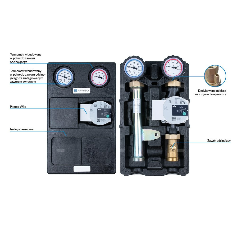 Grupa pompowa AFRISO PrimoTherm K 180-1 DN 25 WP GZ x GW 1 1/2'' x 1'', z izolacją, z pompą obiegową Wilo Para SC 25/6
