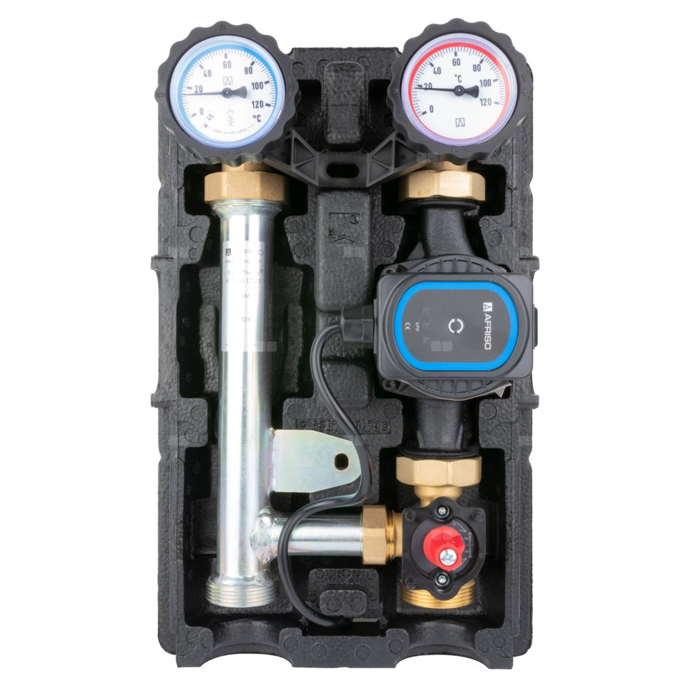Grupa pompowa AFRISO PrimoTherm K 180-2 DN 25 AP 3-WM GZ x GW 1 1/2'' x 1'', z zaworem mieszającym, z izolacją, z pompą obiegową AFRISO APH 361 25-7/180 mm