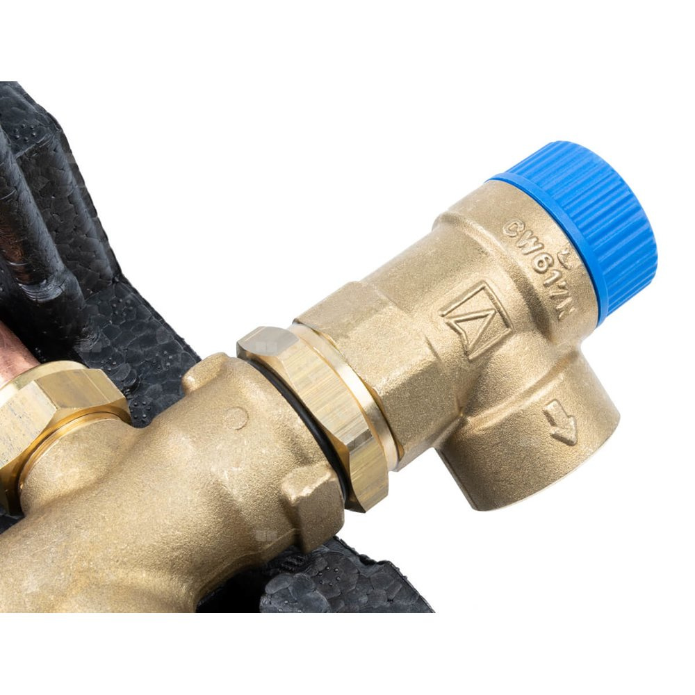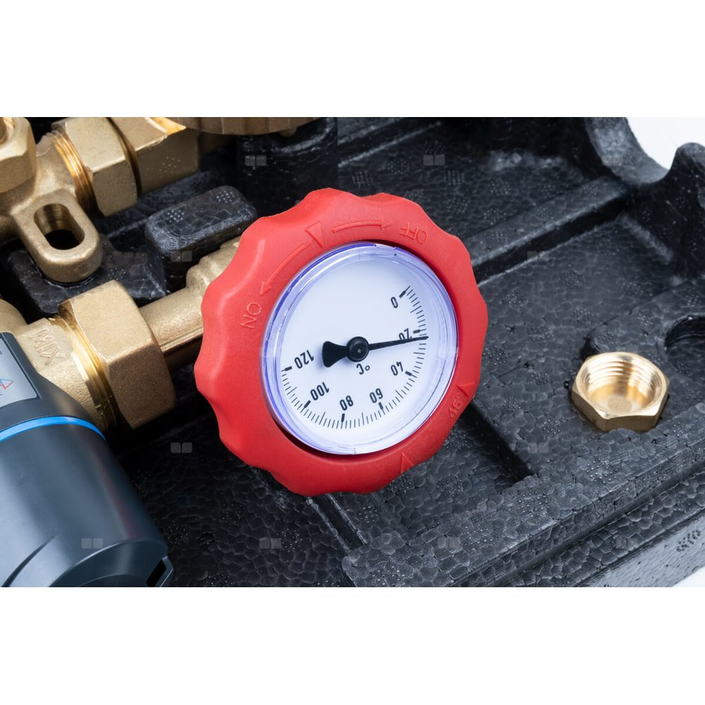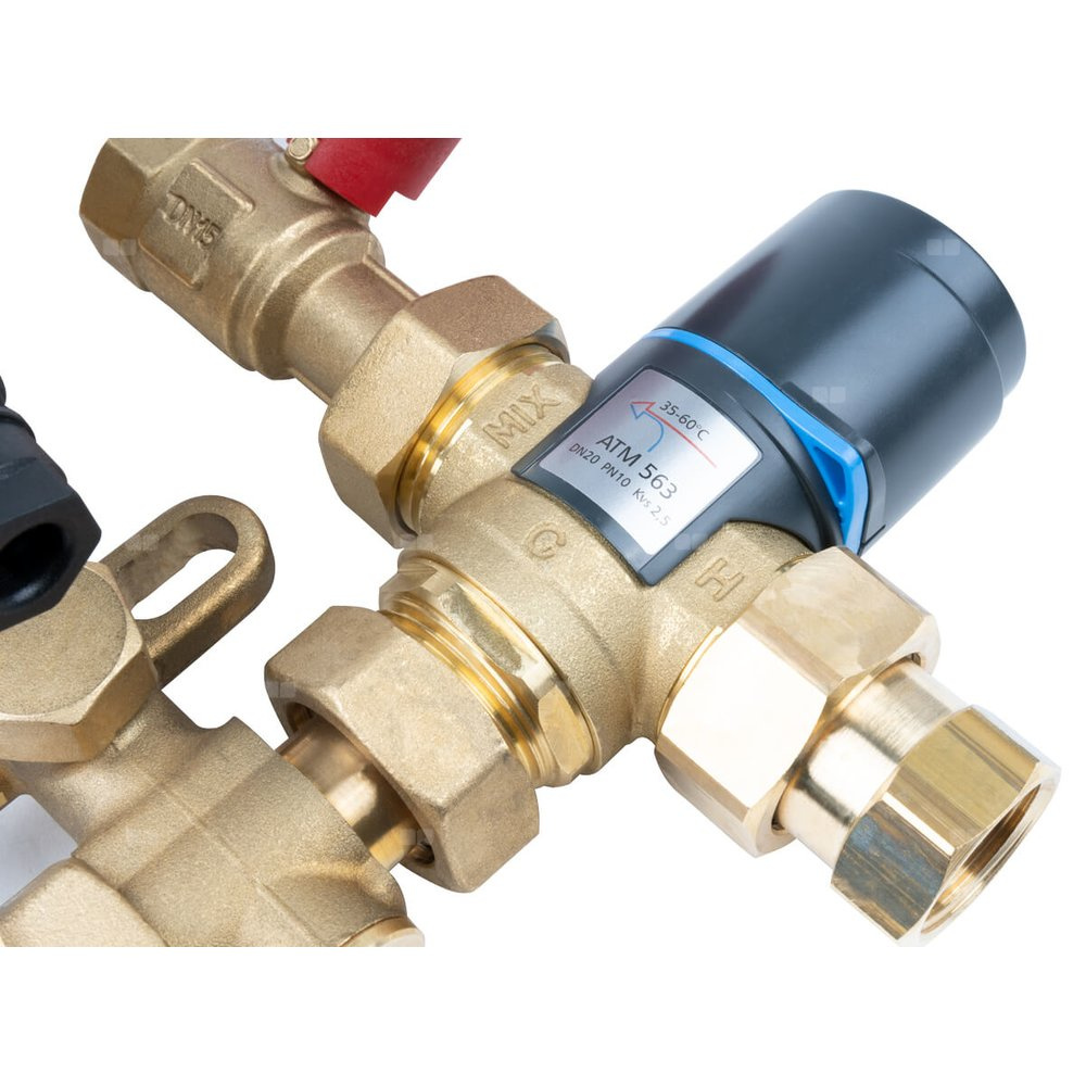 - Zawór termostatyczny ATM zapobiega oparzeniom i pozwala bezpiecznie podnieść temperaturę w zasobniku (np. celem wygrzania lub zwiększenia ilości ciepłej wody).