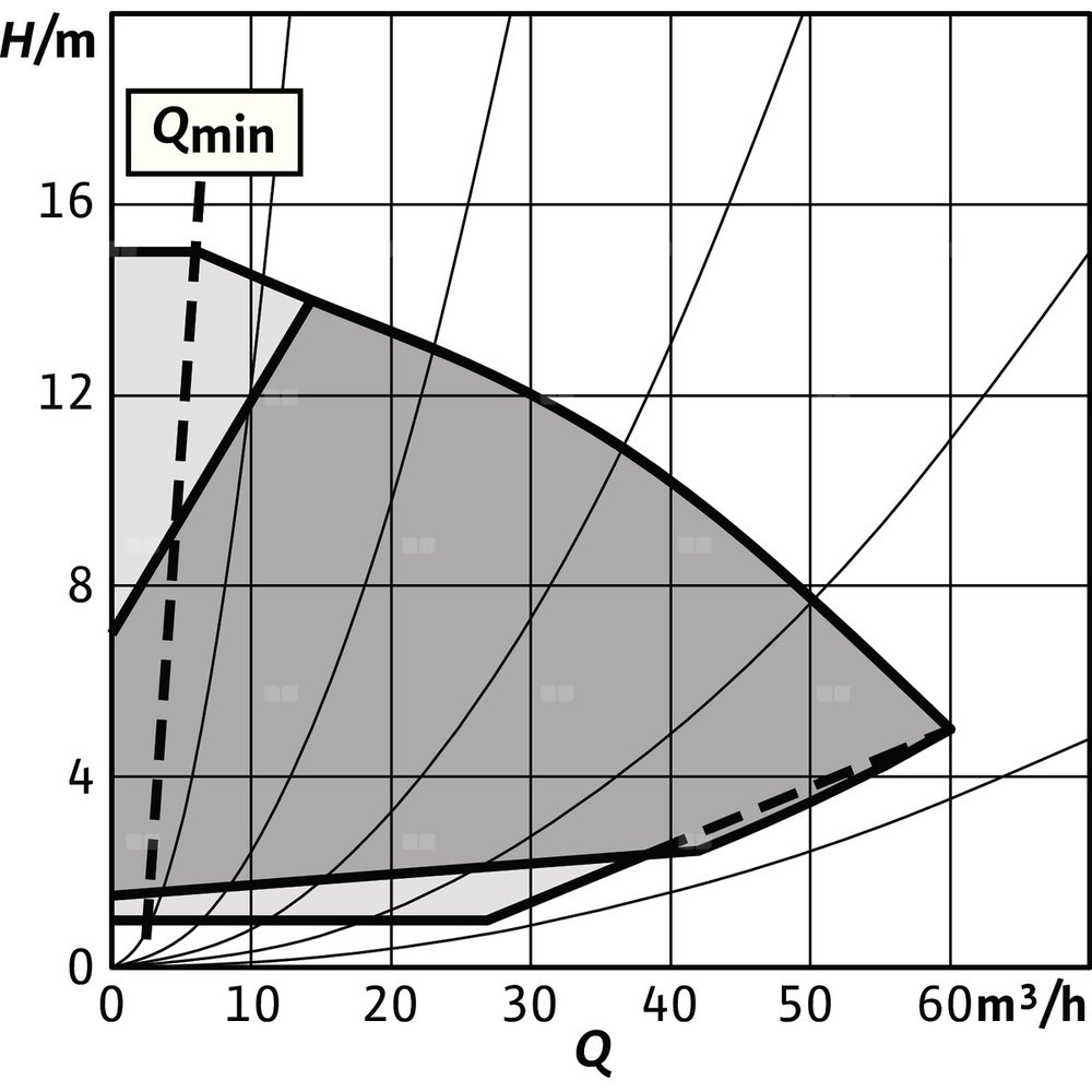 - Uszczelnienie mechaniczne do tłoczenia wody o temperaturze do Tmax. = +140 °C. Do T ≤ +40 °C dopuszczalna jest domieszka glikolu od 20 % do 40 % objętości. W przypadku mieszanin woda-glikol z zawartością glikolu > 40 % max. do 50 % objętości i o temperaturze przetłaczanej cieczy od > +40 °C do maks. +120 °C lub przetłaczanego medium innego niż woda należy zastosować alternatywne uszczelnienie mechaniczne.