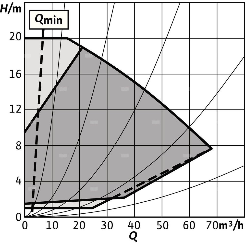 - Uszczelnienie mechaniczne do tłoczenia wody o temperaturze do Tmax. = +140 °C. Do T ≤ +40 °C dopuszczalna jest domieszka glikolu od 20 % do 40 % objętości. W przypadku mieszanin woda-glikol z zawartością glikolu > 40 % max. do 50 % objętości i o temperaturze przetłaczanej cieczy od > +40 °C do maks. +120 °C lub przetłaczanego medium innego niż woda należy zastosować alternatywne uszczelnienie mechaniczne.