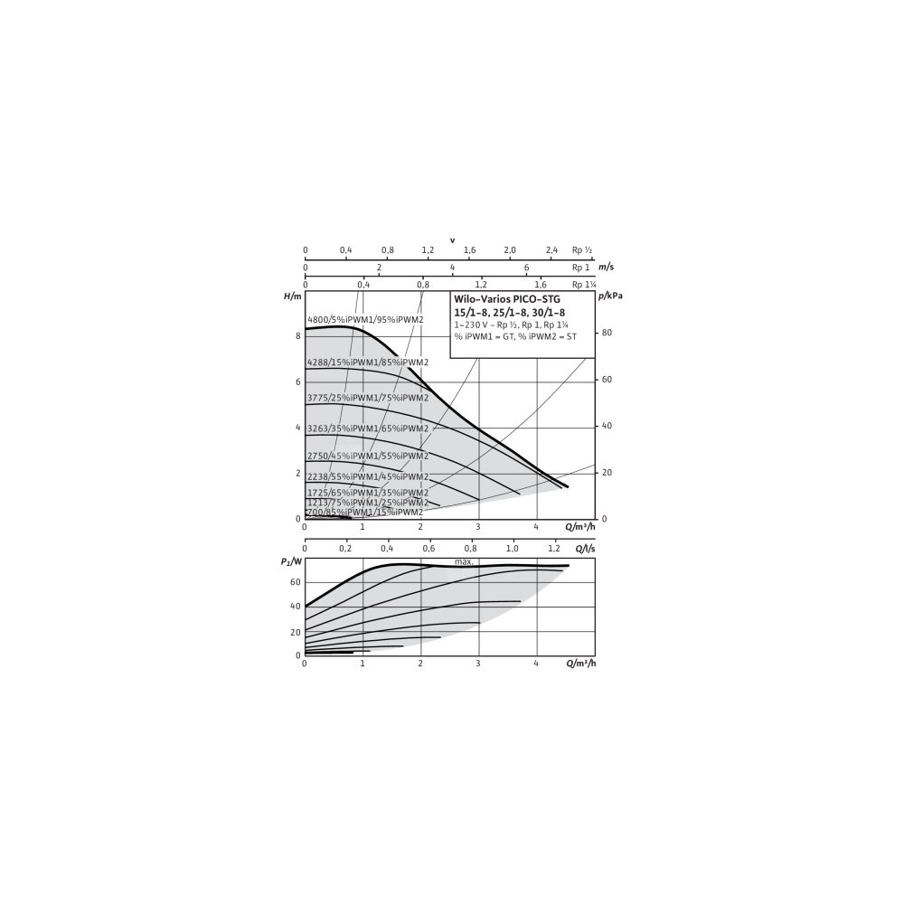 **Wyświetlanie wybranego rodzaju regulacji i charakterystyka pompy