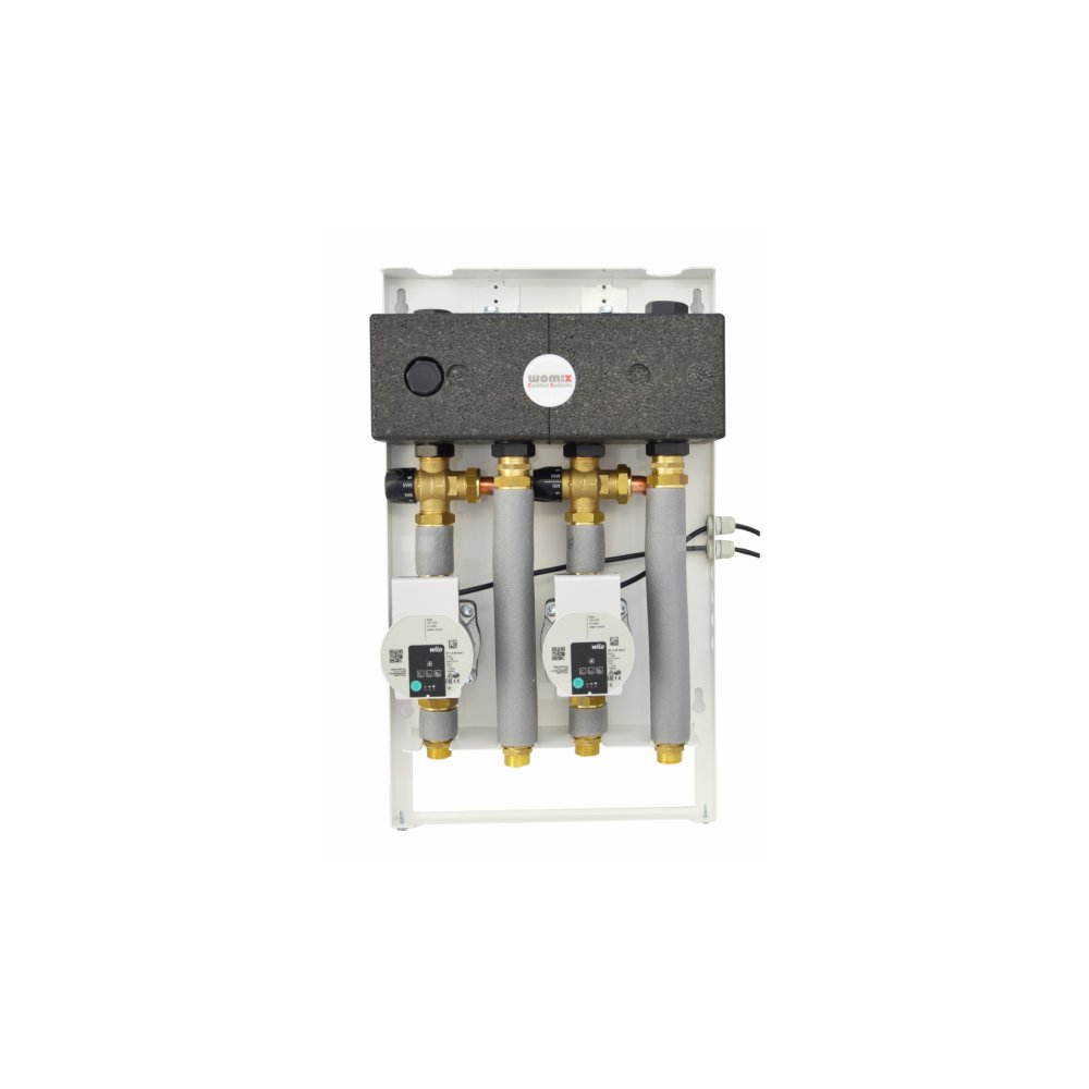 System MIX-BOX jest kompletnym systemem rozdziału obiegów grzewczych w instalacji z wiszącym kotłem grzewczym, zarówno standardowym, jak i kondensacyjnym. Może obsługiwać maksymalnie trzy obiegi grzewcze. Obiegi grzewcze mogą być pompowe lub pompowo-mieszające z zaworem mieszającym obrotowym lub termostatycznym. Grupy pompowe wyposażone są w pompę Wilo Yonos Para 15/6 130 lub Grundfos UPM3 Auto L 15-70 130. Szafka systemu MIX-BOX jest wykonana w wersji naściennej.