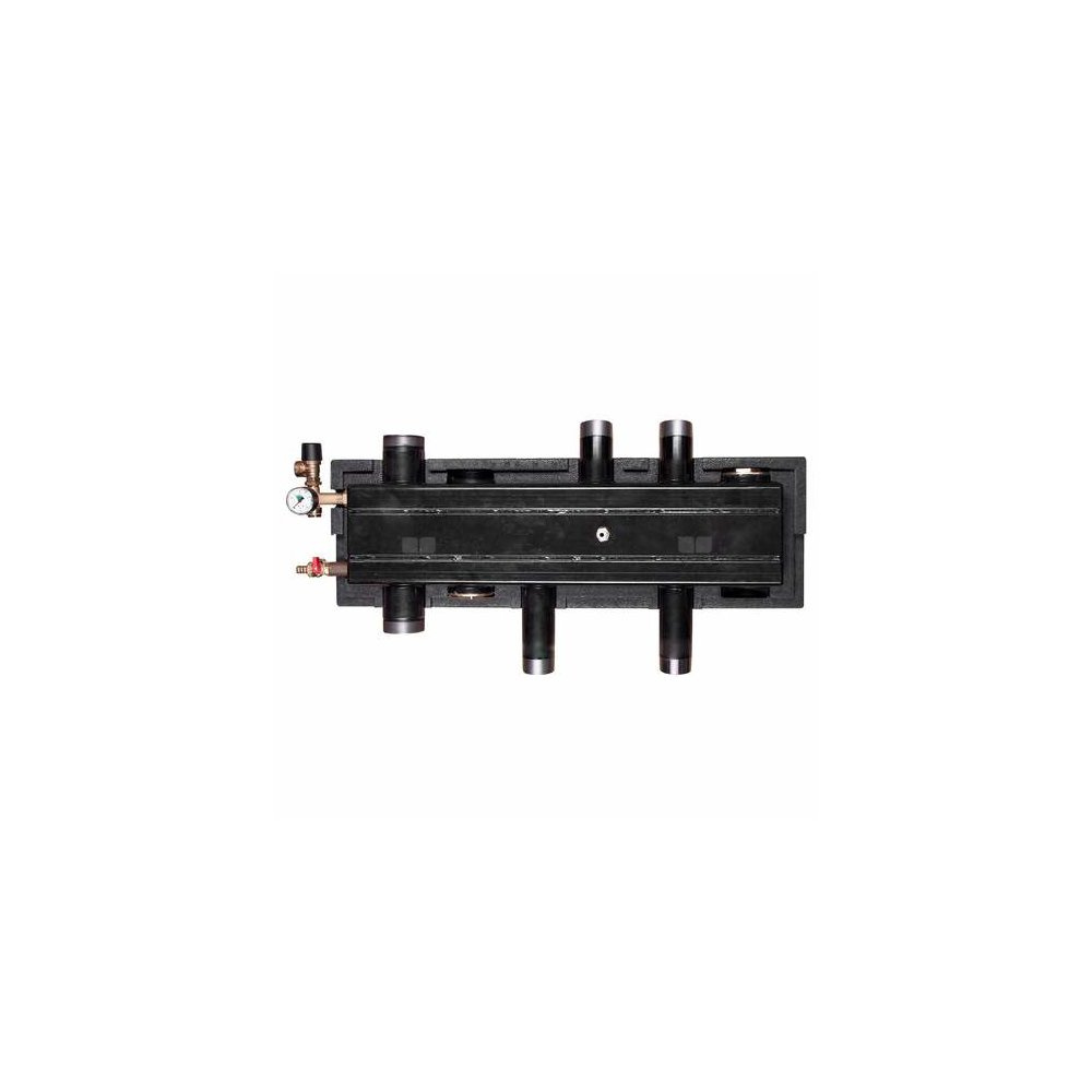 - Budowa: rozdzielacz 3 komorowy z otworem konserwacyjnym, przyłącza obiegu grzewczego 1 ½ ”, przyłącze zbiornika buforowego 2”, grupa bezpieczeństwa z manometrem 4 bar i zaworem bezpieczeństwa ¾”,