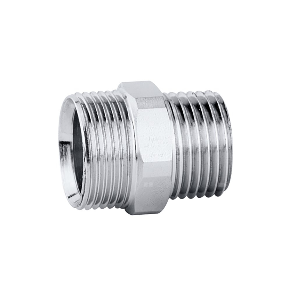 Nypel GZ-GZ Przyłącze: 23 p. 1,5, wlot, uszczelka, Podłączenie do złączek Caleffi. Przyłącze: G 3/8" A (ISO 228-1) GZ, wylot. Wykończenie: chromowane.