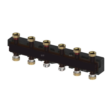 Z izolacją EPP, każdy z 2, 3 lub 4 parami przyłączy skierowanymi do góry lub do dołu (można również zastosować przyłącza dolne), do montażu grup pompowych (pasuje do grup pompowych z rozstawem osi 125 mm), ze wszystkimi niezbędnymi śrubunkami do wykonania montażu.