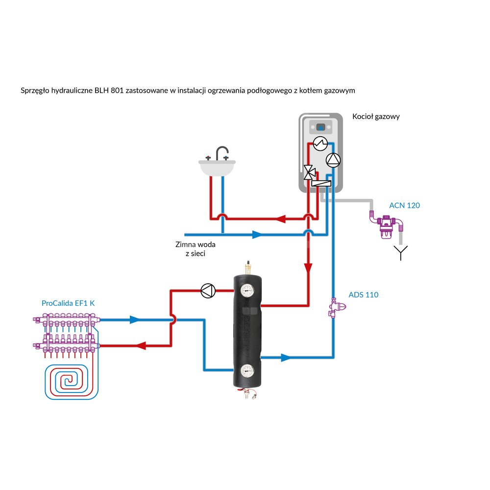 Rozdziela hydraulicznie obieg źródła od obiegów po stronie instalacji.