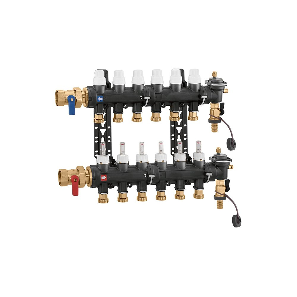 - rozdzielacz zasilający z technopolimeru z wbudowanymi przepływomierzami i zaworami równoważącymi natężenie przepływu;