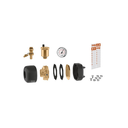 - mosiężny element końcowy z automatycznym zaworem odpowietrzającym, zaworem napełniania/spustu,