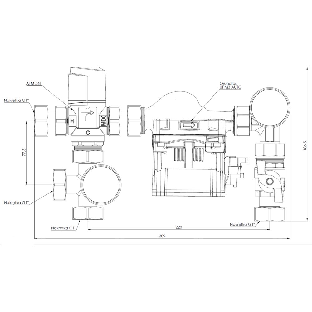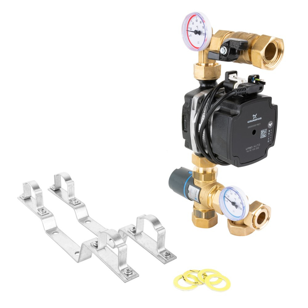 Grupa pompowa AFRISO BTU 501 nakrętka x nakrętka 1'' x 1'', z zaworem mieszającym, z pompą obiegową Grundfos UPM3 Auto
