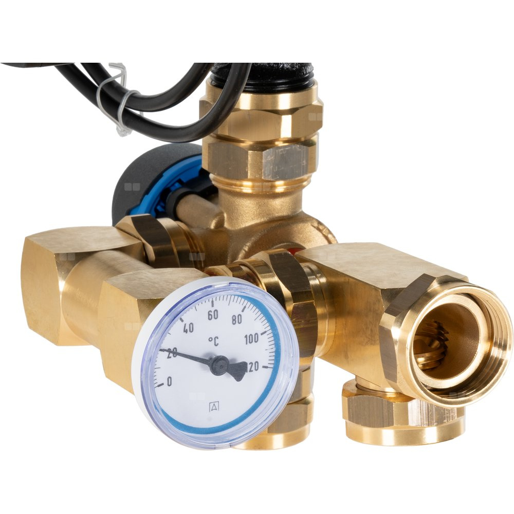 Stosowany w instalacjach grzewczych.Montowany między źródłem ciepła a rozdzielaczem ogrzewania płaszczyznowego w szafce rozdzielacza.