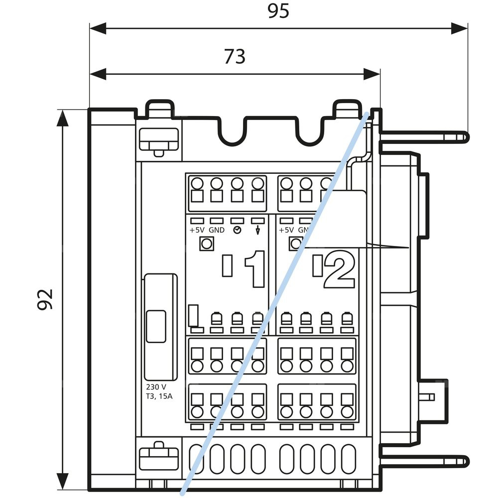 Montowany na szynie DIN do modułu podstawowego BM w pobliżu rozdzielacza.