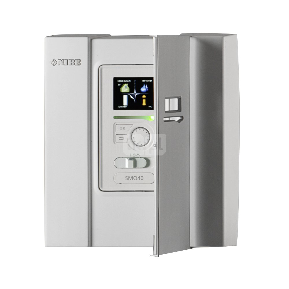 Zaawansowany moduł sterujący NIBE umożliwiający sterowanie ogrzewaniem, chłodzeniem, produkcja c.w.u. i wentylacja, Wbudowana karta rozszerzeń pozwala na sterowanie drugim obiegiem grzewczym, szczytowym źródłem ciepła, cyrkulacja c.w.u. lub praca pomp w k